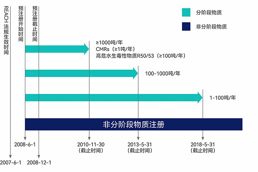 物质包括分阶段物质(已有物质)和非分阶段物质(新物质)两种:对于非欧盟制造商而言,分阶段物质即列于欧盟EINECS,NLP名录之中的物质;此外则为非分阶段物质。